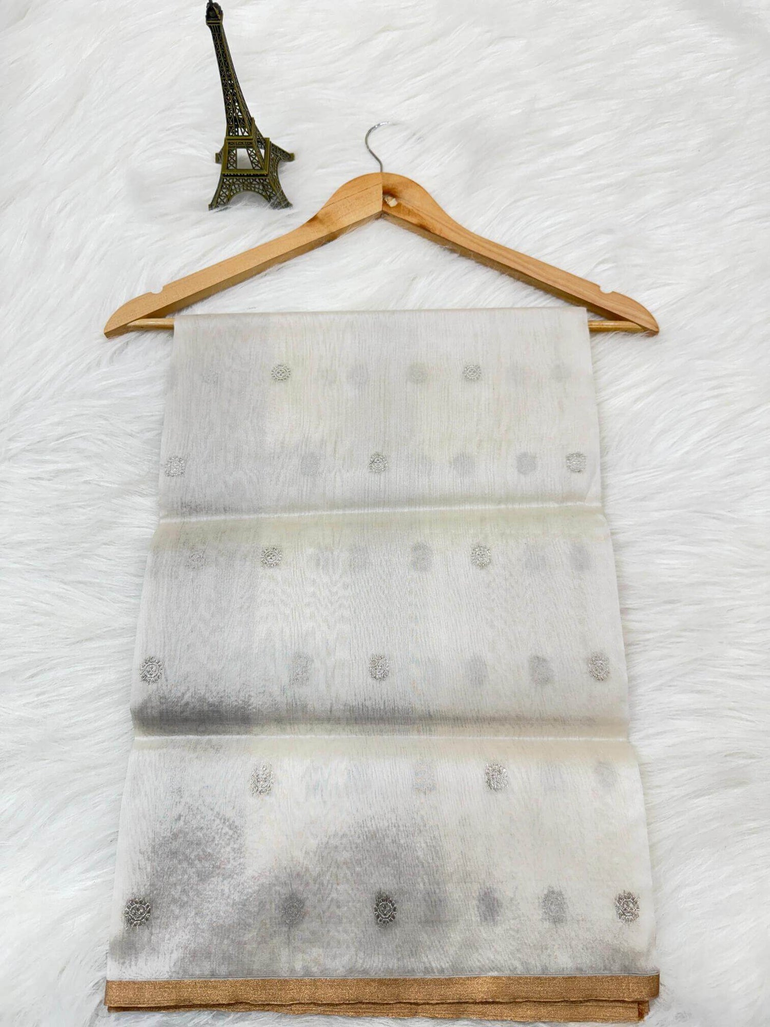 Delicate and timeless, our Booti Design Saree Collection features handwoven Banarasi sarees...