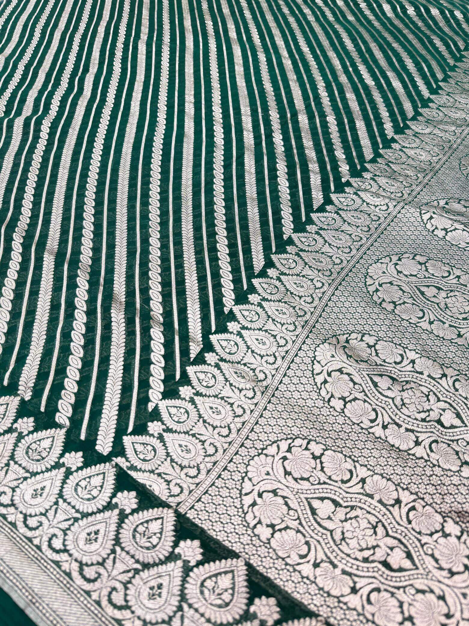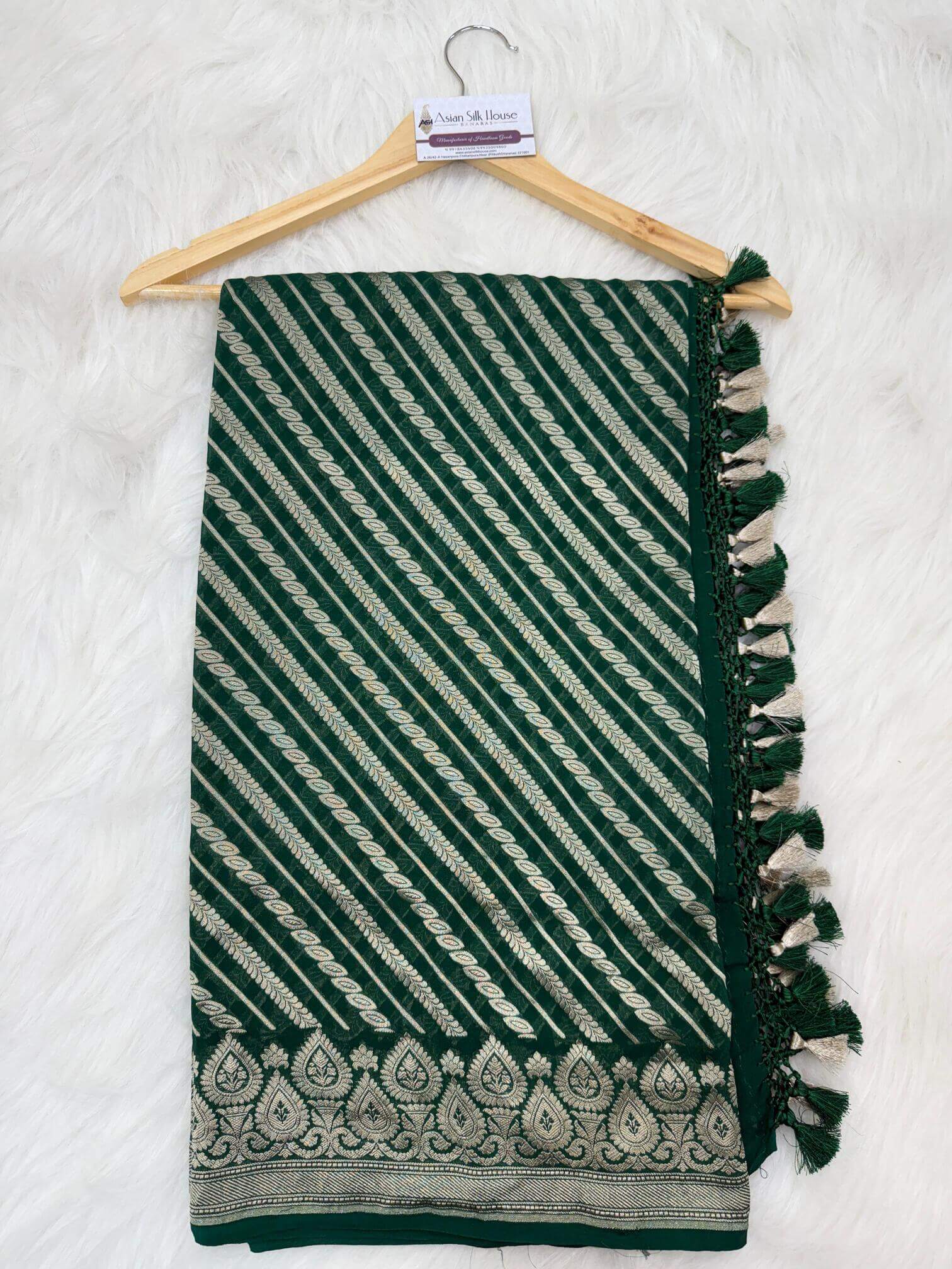 KHADDI GEORGETTE AADA DESIGN DUPATTA WITH WATER ZARI – BOTTLE GREEN