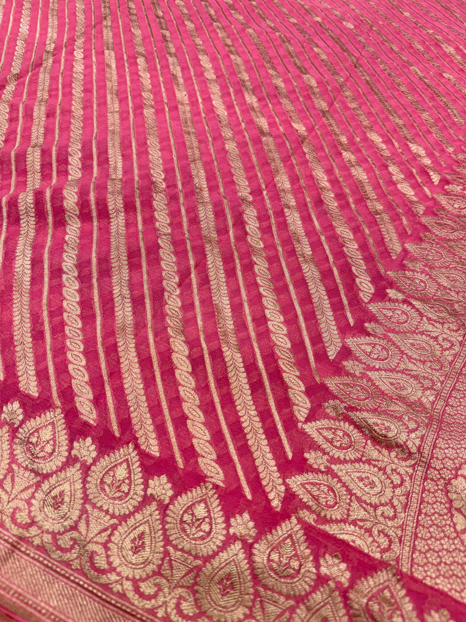 KHADDI GEORGETTE AADA DESIGN DUPATTA WITH WATER ZARI – PINK