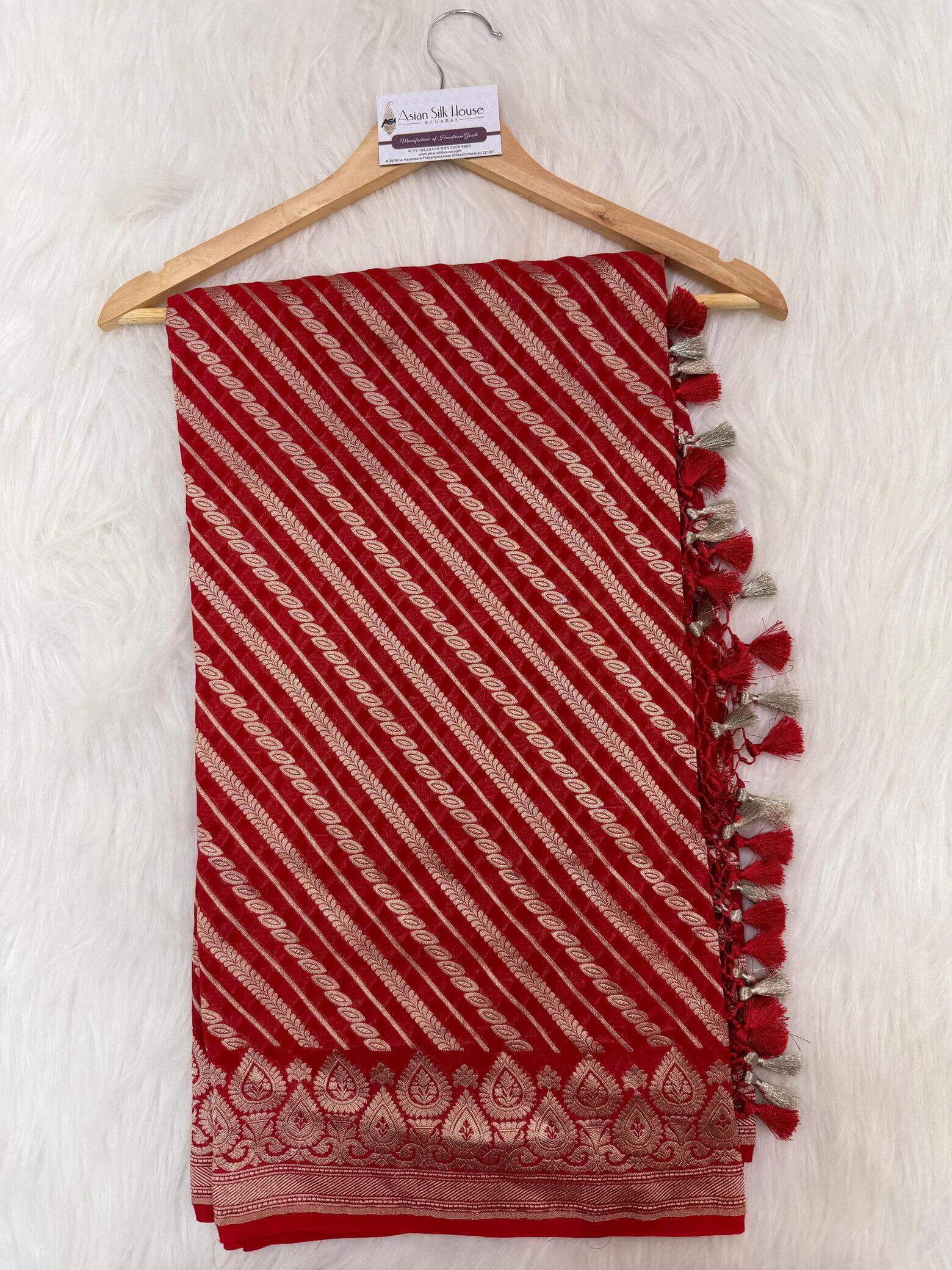 KHADDI GEORGETTE AADA DESIGN DUPATTA WITH WATER ZARI – RED