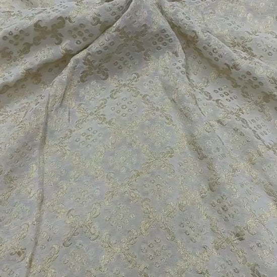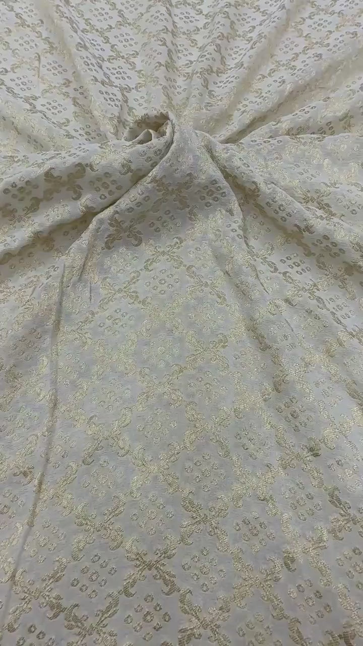 A timeless blend of craft and elegance—this dyeable khaddi georgette fabric features intricate bandhani jaal patterns and delicate water zari weaving, making it perfect for flowing sarees, statement suits, and designer dresses.