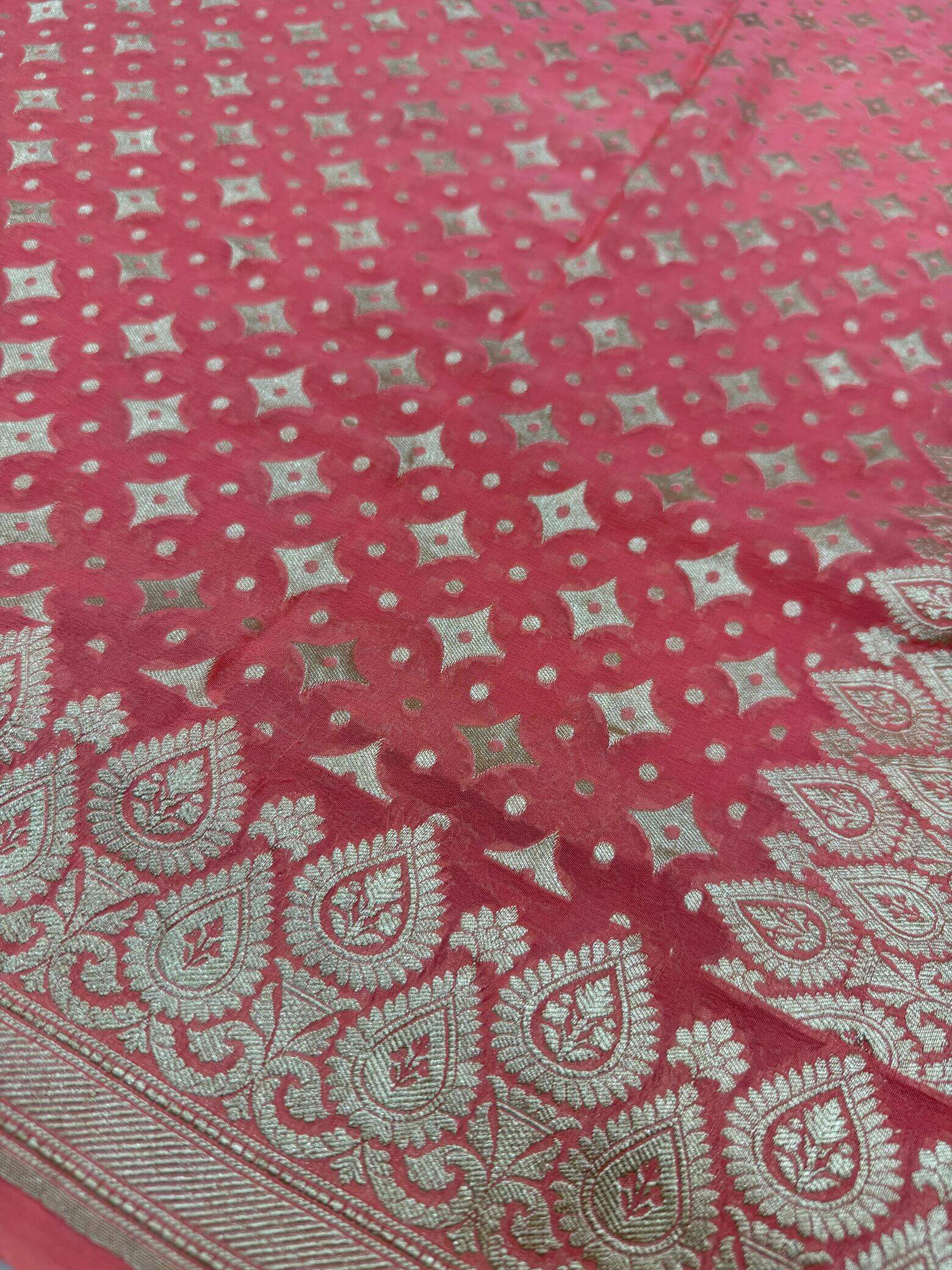 KHADDI GEORGETTE BOOTI DESIGN DUPATTA WITH WATER ZARI – PEACH