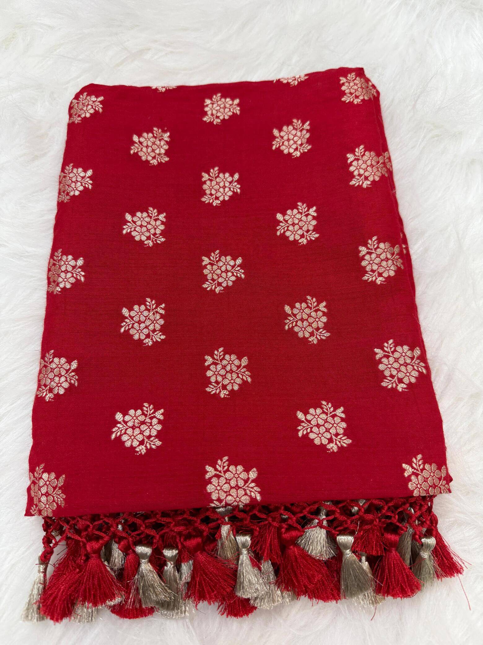 KHADDI MOONGA GEORGETTE BOOTI DESIGN DUPATTA WITH WATER ZARI – TOMATO RED
