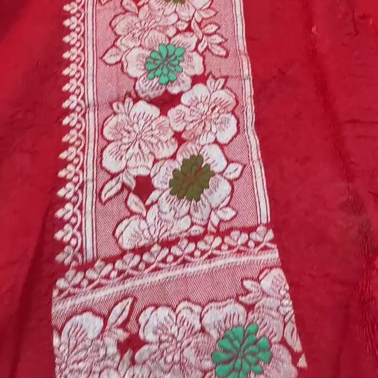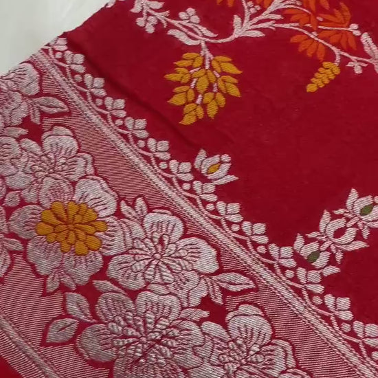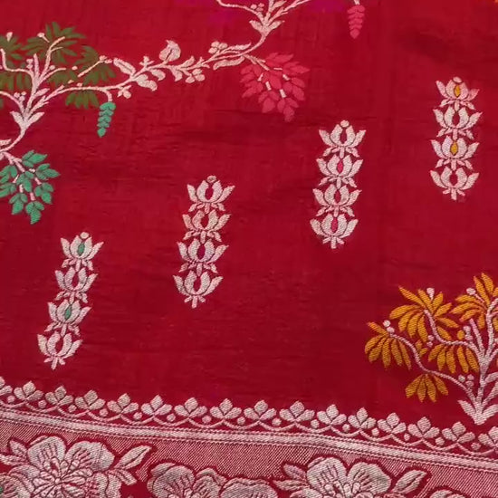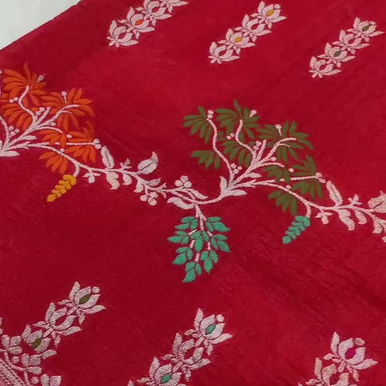 PURE TUSSAR KHADDI GEORGETTE SAREE – RED (KADHUWA REAL ZARI, BOOTA & JAAL DESIGN)