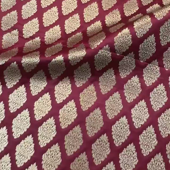 Timeless and elegant, this Satin Brocade Fabric in a deep Maroon shade is designed with traditional Boota motifs, beautifully woven in rich Zari Silk. Ideal for making blouses, lehengas, festive suits, and occasion wear.