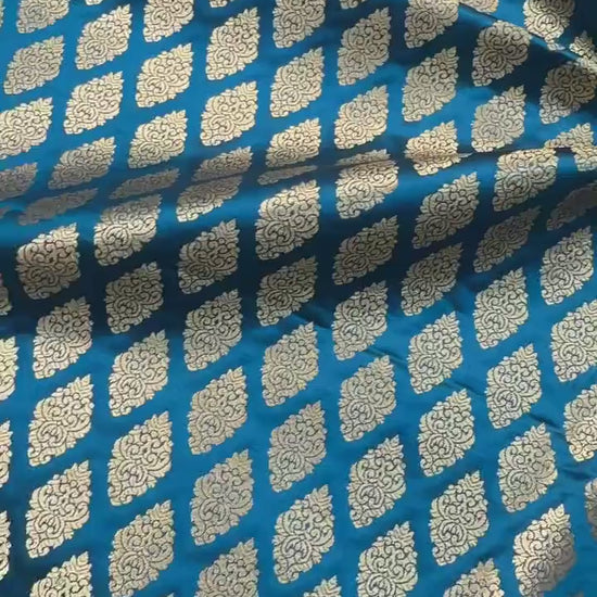 SATIN BROCADE BOOTA FABRIC – PEACOCK BLUE (ZARI SILK WEAVE, PER METER)