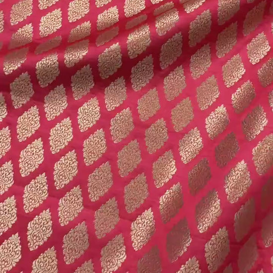 Charming and vibrant, this Satin Brocade Fabric in Strawberry pink features elegant Boota motifs woven in rich Zari Silk. Perfect for festive blouses, lehengas, kurtis, and designer ethnic wear with a modern twist.
